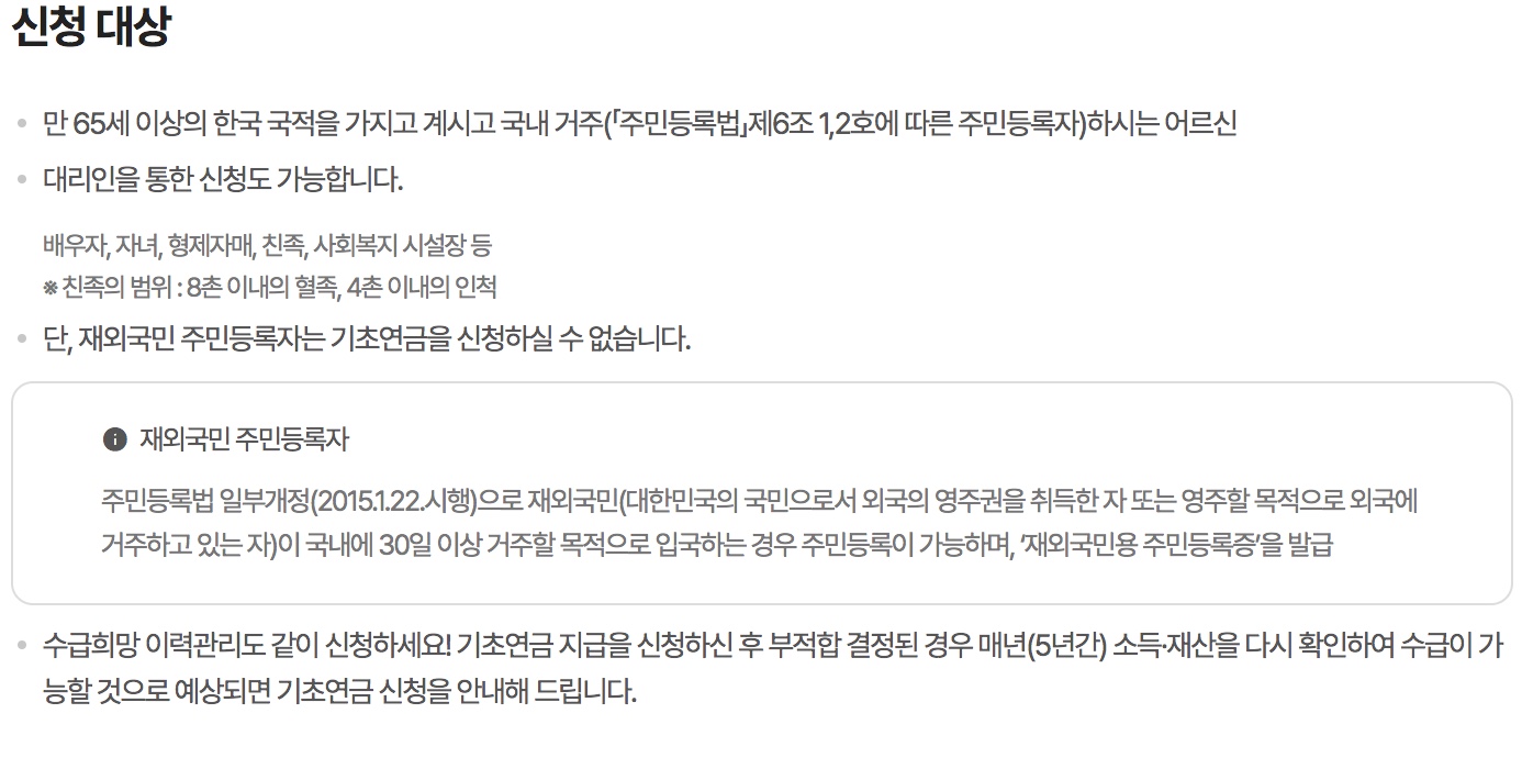 기초연금은만 65세 이상이고 대한민국 국적을 가지고 계시며 국내에 거주하고 계신 어르신 중 가구의 소득인정액이 선정기준액 이하인 분들께 드립니다.