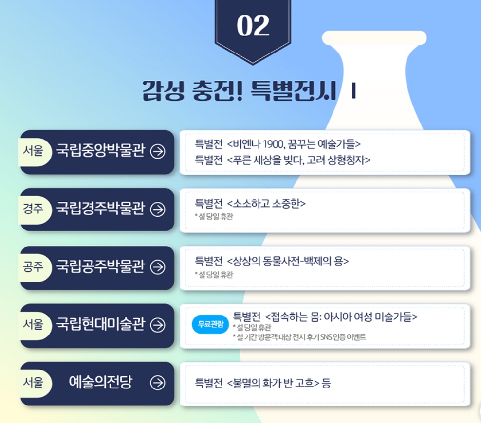 국립현대미술관 특별전 무료 관람, 국립국악원, 국립극장, 국립아시아문화의전당 등의 다양한 공연도 놓치지 마세요!